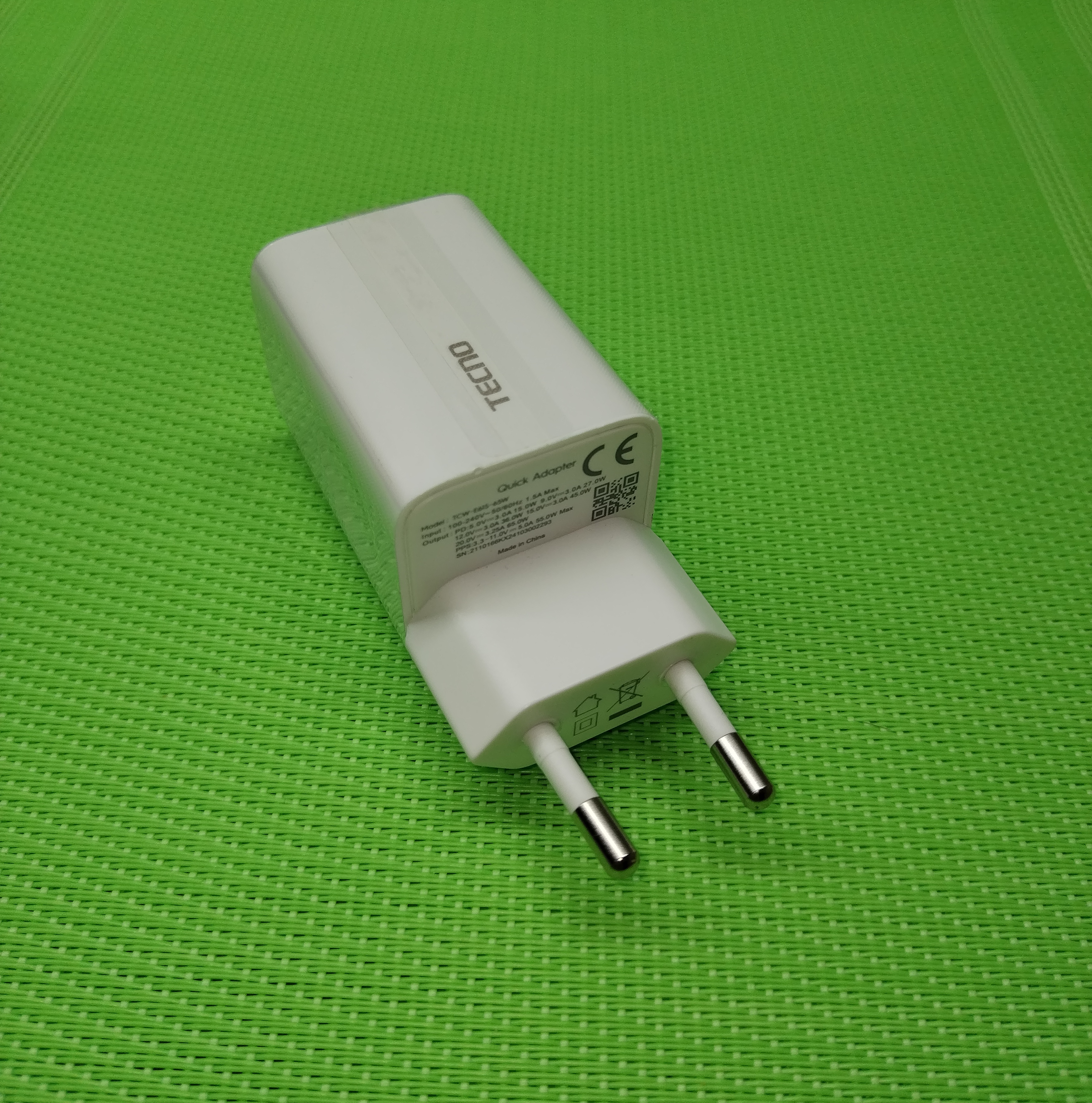 5.0В/3.0А (15Вт), 9.0В/3.0А (27Вт), 12.0В/3.0А (36Вт), 15.0В/3.0А (45Вт), 20.0В/3.25А (65Вт).